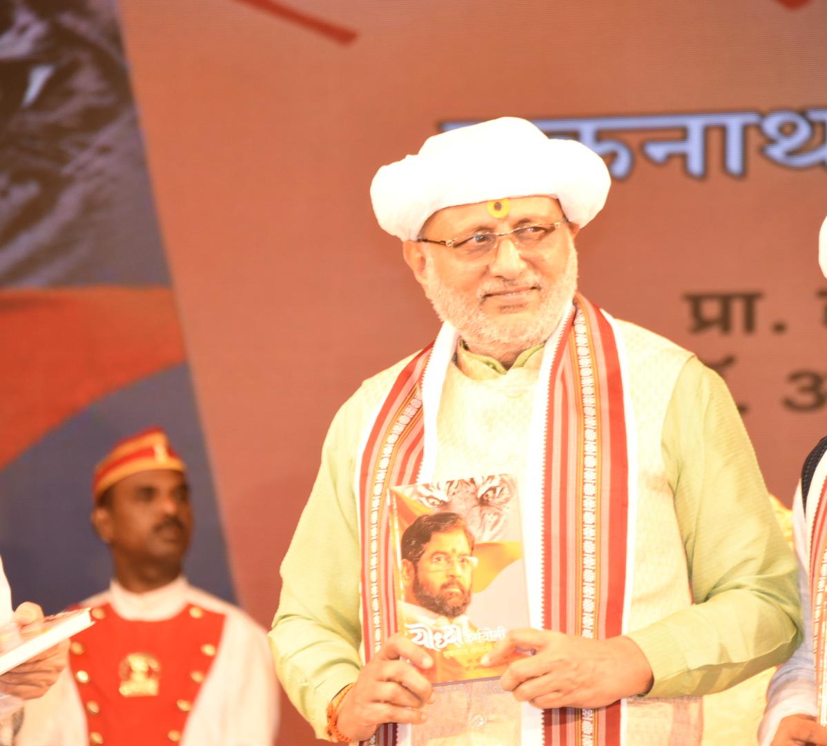 ग्रंथदिंडीच्या माध्यमातून ‘योद्धा कर्मयोगी.. एकनाथ संभाजी शिंदे’ हा चरित्र ग्रंथ व्यासपीठावर आणण्यात आला आणि या चरित्र ग्रंथाचे प्रकाशन राज्यपाल सी.पी.राधाकृष्णन व उपस्थित मान्यवरांच्या हस्ते संपन्न झाला.