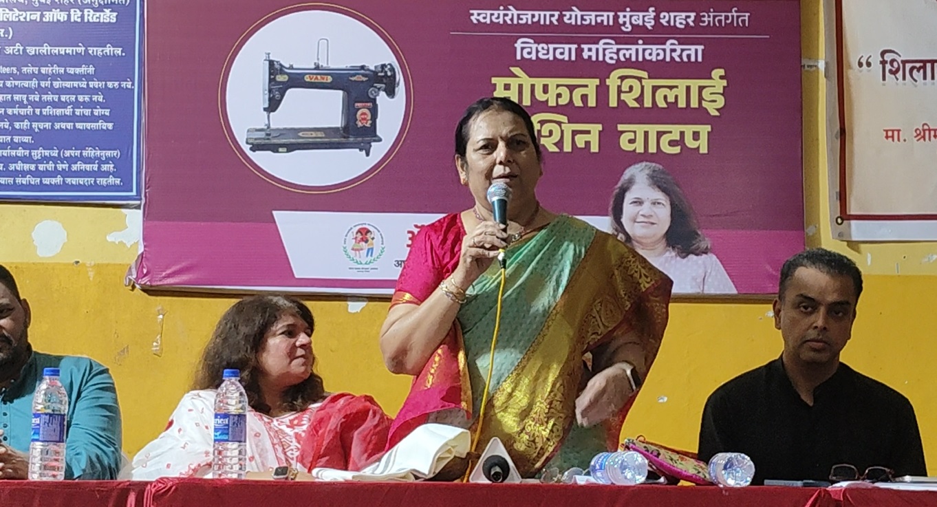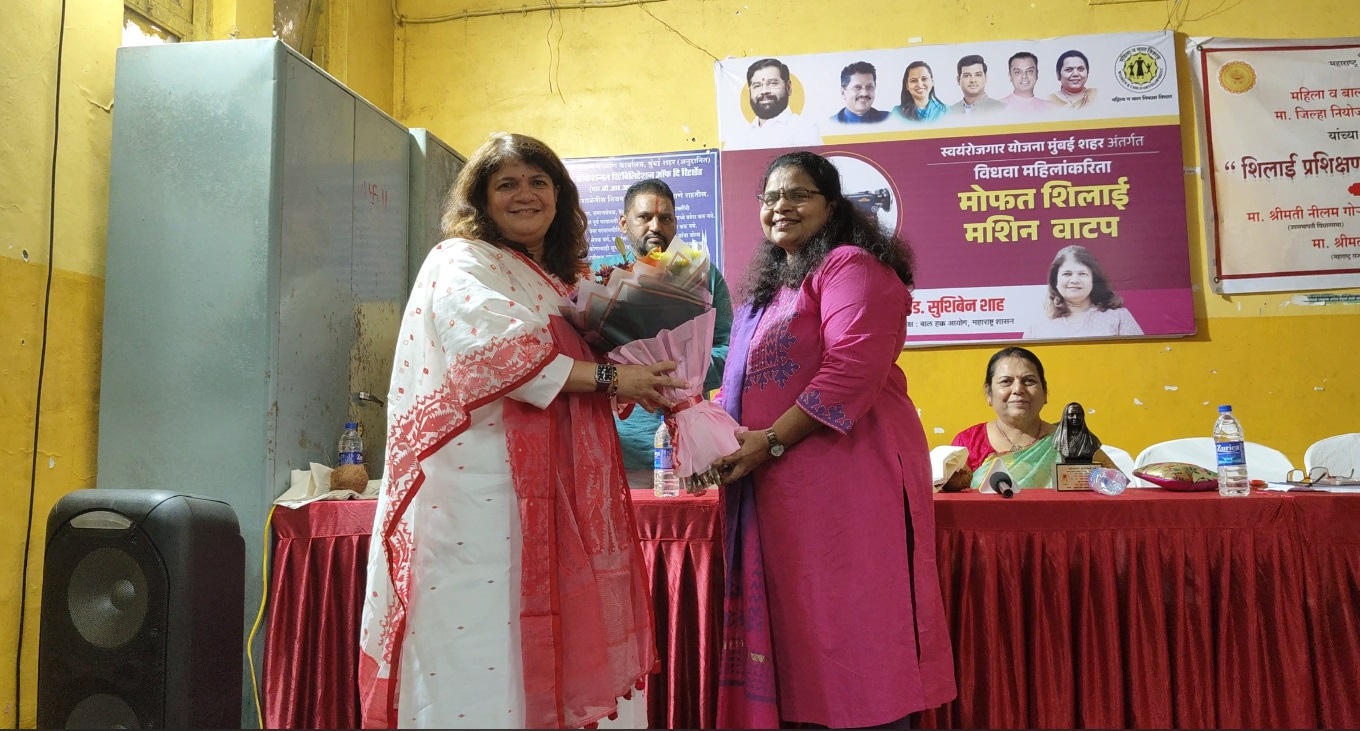 शनिवार, दि. २७ जुलै: मुंबई जिल्हा नियोजन समिती आणि महिला व बाल विकास विभाग आणि बाल हक्क आयोगाच्या अध्यक्ष्या सुशीबेन शाह यांच्या माध्यमातून शिलाई यंत्र वाटप आणि प्रशिक्षण कार्यक्रम दक्षिण मुंबई येथील ताडदेव परिसरात आयोजित करण्यात आला होता. ह्या कार्यक्रमाला विधान परिषदेच्या उपसभापती नीलम गोर्हे आणि राज्यसभा खासदार मिलिंद देवरा यांची प्रमुख उपस्थिती होती. विधवा महिलांना आधार आणि स्वयंरोजगाराच्या माध्यमातून महिला सक्षमीकरण ह्या हेतूने विनामूल्य शिलाई वाटपाचा कार्यक्रम हाती घेण्यात आला होता. आजच्या कार्यक्रम दरम्यान उपसभापती नीलम गोर्हे आणि राज्यसभा खासदार मिलिंद देवरा यांच्या हस्ते ६० महिलांना आज प्रातिनिधीक स्वपरुपात शिलाई मशीन वितरित करण्यात आल्या.