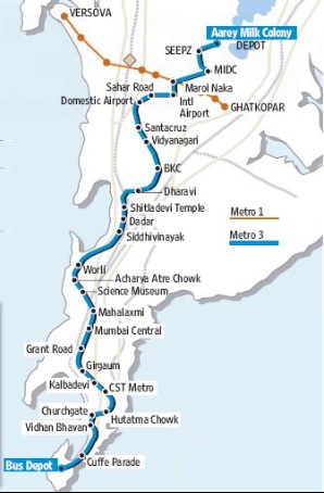 The Aqua Line’s route includes major stations such as Cuffe Parade, Vidhan Bhavan, Churchgate, Hutatma Chowk, CST Metro, Kalbadevi, Girgaon, Grant Road, Mumbai Central Metro, Mahalaxmi, Science Museum, Acharya Atre Chowk, Worli, Siddhivinayak, Dadar, Sitladevi, Dharavi, BKC, Vidyanagari, Santacruz, Domestic Airport, Sahar Road, International Airport, Marol Naka, MIDC, SEEPZ, and Aarey Depot.