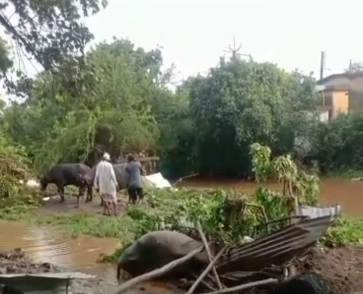 तिन्ही ठार, शेकडो जनावरे वाहून गेली